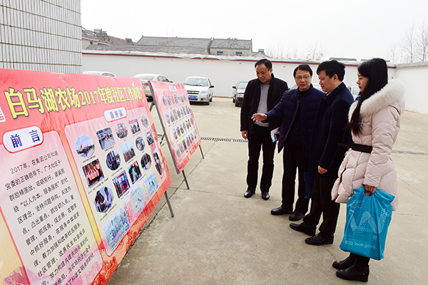 1月19日,由集團(tuán)公司人力資源部、社會(huì)事業(yè)部、資產(chǎn)經(jīng)營(yíng)部、審計(jì)監(jiān)察部組成的聯(lián)合考核組一行到白馬湖農(nóng)場(chǎng)對(duì)2017年度重點(diǎn)工作完成情況及所取得主要成績(jī)等進(jìn)行綜合考核,農(nóng)場(chǎng)領(lǐng)導(dǎo)姚春華、韓躍武及相關(guān)部門(mén)負(fù)責(zé)人陪同考核并匯報(bào)情況。