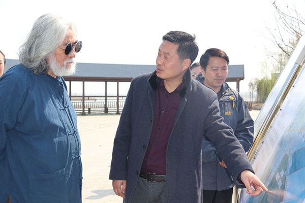張紀中一行在看完現場后對云臺農場堅持保護原生態優美環境的做法大加贊賞,大家一起登上“聽荷”亭臺,眼前的美景盡收眼底,北邊是綿延壯闊的云臺山,南邊是蜿蜒流淌的燒香河,上百只白鷺在水面上齊飛共舞,張紀中頓時夸贊,這里有山有水、風景如畫,就是世外桃源呀!他表示,云臺農場的區位、交通、自然環境等各種優勢都很明顯也很難得。目前,江蘇省第十一屆園博園選址云臺,在規劃建設過程中,將“西游記”的文化精神有機的融合到園博園主題公園建設中,針對園博園主題文化公園的主題創意策劃、景點布置、宣傳推廣、配套服務項目等方面,考察組也分別提出了良好的建議。