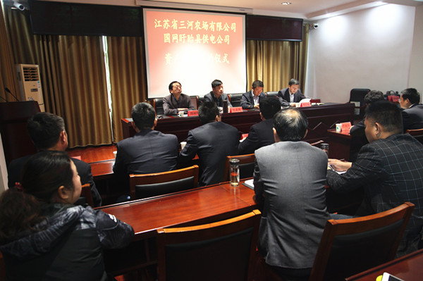 簽約會由三河農(nóng)場有限公司副總經(jīng)理、董事韓樹明主持。盱眙供電公司副總經(jīng)理邱巨春在會上通報了關(guān)于三河農(nóng)場“兩改”工作情況及下階段工作。三河農(nóng)場有限公司黨委書記、董事長、總經(jīng)理王波成對盱眙縣供電公司給予的大力支持表示由衷的感謝。他說,多年來,盱眙縣供電公司與三河農(nóng)場有限公司和諧相處,互利共贏,并在業(yè)務(wù)上給予了大力支持,為三河經(jīng)濟發(fā)展提供了強有力的電力保障。三河農(nóng)場有限公司按照中共中央、國務(wù)院、省委省政府、集團公司關(guān)于進一步推進農(nóng)墾改革發(fā)展的文件精神,積極與盱眙縣供電公司對接“兩改”工作(電力體制改革、農(nóng)場電網(wǎng)規(guī)劃改造),在雙方大力努力下,取得了突破性進展。此次改革對促進三河農(nóng)場有限公司真正成為市場主體、公平參與市場競爭,集中精力和有限資源發(fā)展主業(yè),提高國有資本運營質(zhì)量和效益,提質(zhì)增效、提升核心競爭力,具有非常重要的現(xiàn)實意義。希望雙方能在下一階段工作中保持良好的溝通與合作,爭取各項工作的主動性,共同推進“兩改”工作實施到位,三河農(nóng)場有限公司將繼續(xù)全力配合盱眙供電公司按照時間節(jié)點做好“兩改”工作,力爭打造淮安市“兩改”樣板工程,并將以此次“三供一業(yè)”職能移交為契機,進一步堅定信心,激發(fā)內(nèi)生發(fā)展動力,有序推進農(nóng)場改革、產(chǎn)業(yè)發(fā)展,真正將農(nóng)墾改革文件精神落到實處。同時,希望利用好此次合作平臺,充分利用好綜合能源政策空間,實現(xiàn)三河農(nóng)場有限公司與盱眙縣供電公司雙贏局面。盱眙供電公司總經(jīng)理楊飛表示,三河農(nóng)場有限公司作為全省農(nóng)業(yè)現(xiàn)代化建設(shè)的重要力量,始終在盱眙及周邊地區(qū)現(xiàn)代農(nóng)業(yè)建設(shè)過程中發(fā)揮著示范引領(lǐng)作用。盱眙供電公司將建立常態(tài)溝通機制,盡快落實政策利好;加快三河電網(wǎng)提檔,全面建設(shè)精品電網(wǎng);秉持戰(zhàn)略合作,積極推進改制;堅持客戶至上導(dǎo)向,打造現(xiàn)代服務(wù)體系;著眼長遠(yuǎn)發(fā)展大勢,推動能源變革發(fā)展。與三河一道,為實現(xiàn)鄉(xiāng)村振興,農(nóng)業(yè)農(nóng)村現(xiàn)代化發(fā)展作出新的更大貢獻。