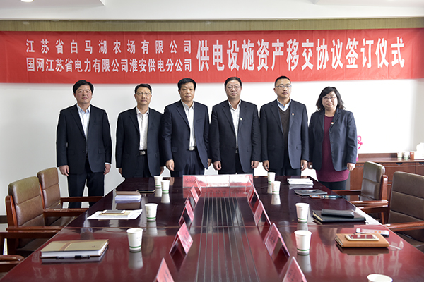 4月16日下午,江蘇省白馬湖農(nóng)場有限公司與國網(wǎng)江蘇省電力有限公司淮安供電分公司簽訂供電設(shè)施資產(chǎn)移交協(xié)議,開啟雙方攜手發(fā)展、合作共贏的新篇章。