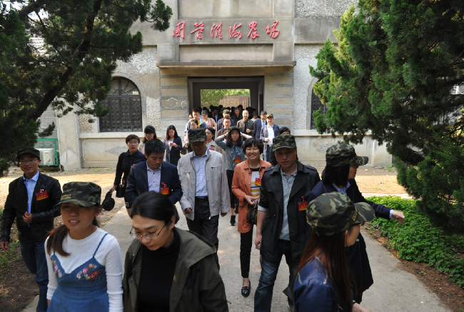 53日下午,江蘇農墾青年員工論壇及各單位工會主席、部分老領導等一行近200人,在集團公司工會主席佟曉廷的帶領下,到農建四師暨淮海農場歷史陳列館參觀學習。