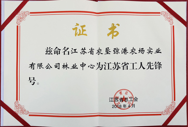 日前,江蘇省總工會授予?港農場林業中心“江蘇省工人先鋒號”榮譽稱號。
