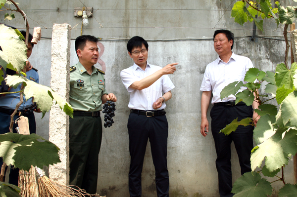 會后,繆毅一行還走進崗埠高效農業基地,參觀了大棚葡萄種植。