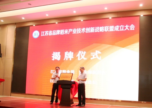 會上各成員單位表決通過了《江蘇省品牌稻米產業技術創新戰略聯盟協議書》,張生彬副局長和顧俊處長為聯盟成立進行了揭牌。會上選舉產生了聯盟理事長單位、副理事長單位和秘書長單位,江蘇省農墾米業集團有限公司當選為理事長單位,淮安大米產業聯盟有限公司當選為副理事長單位,江蘇省農墾米業集團有限公司稻米精深加工研究所當選為秘書長單位。