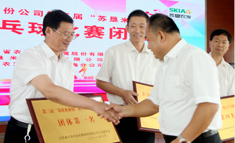 此次比賽共決出團體和男單兩個項目的前六名和十二強。經過兩天緊張激烈的比賽, 新洋分公司代表隊脫穎而出,榮獲團體第一名,第二至第六名的代表隊分別為:黃海分公司、蘇墾米業、東辛分公司、三河分公司、白馬湖分公司。新洋分公司的王光軼榮獲男子單打第一名,三河分公司項永寶、新曹分公司顧文才分獲二、三名。新洋分公司、黃海分公司、蘇墾米業、東辛分公司獲得賽會組織獎;南通分公司榮獲精神文明獎。
