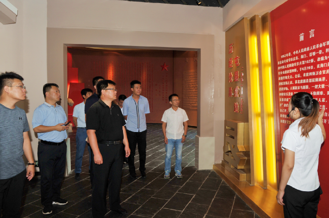 河北省塞北管理區的前身與淮海農場在歷史上有著較為深厚了淵源,1955年從兩個農場一個牧場合并組建的沽源農場的第一任場長,就是當年從農建四師調任過去的李承恩擔任的。為了了解淮海的軍墾傳統文化,白建軍一行在單祥忠等人的陪同下,參觀了農建四師陳列館,實地了解農建四師時期,軍墾戰士響應軍委主席毛澤東的號召,生產待命,建設農場的歷史,并通過農場公司領導和講解員的現場講述,讓白建軍一行真實體會到了農建四師時期那“艱苦奮斗,不怕困難,團結奮進,無私奉獻”的淮海精神。