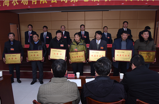 黨委書記王進強作題為《聚力改革創新增動力 激活存量資源促轉型 為譜寫新時代淮海高質量發展新篇章不懈奮斗》的工作報告。王進強作的職代會的工作報告共分為三個部分。一是奮力拼搏,以堅實的步伐實現高質量發展新開端;二是解放思想,以創新的理念謀劃高質量發展新布局;三是積極作為,以務實的舉措譜寫高質量發展新篇章。王進強說,2019年是推進淮海高質量發展的奮進之年。今年重點要抓好以下五個方面的工作:一是聚焦提質增效,高水平推進現代農業發展;二是挖掘存量潛能,高質量提升資源利用水平;三是深化改革創新,高效率提高運營管控能力;四是堅持統籌兼顧,高起點謀劃民生幸福工程;五是突出固本強基,高力度營造干事創業氛圍。