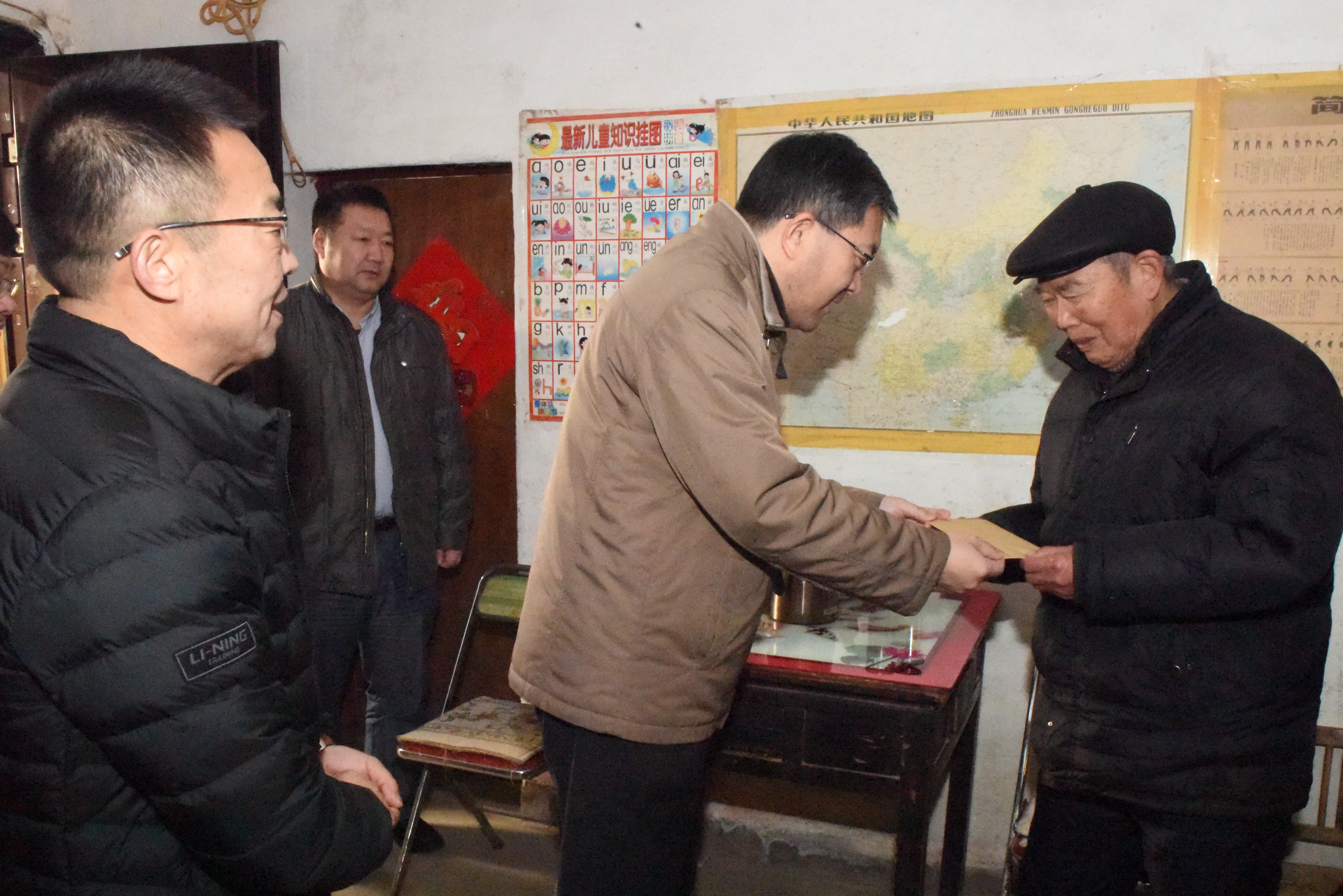 87歲高齡的離休老干部祁國瑞住在群樂小區(qū)的平房家中,楊義林等一行徒步來到祁老家中時,緊緊地握著迎上前來的祁國瑞老人的手,親切地噓寒問暖,并為他送上新春的問候和祝福。在交談中,楊義林詳細(xì)詢問的老人的身體狀況以及生活起居情況,囑咐家人要照顧好老人的身體,讓老人頤養(yǎng)天年。