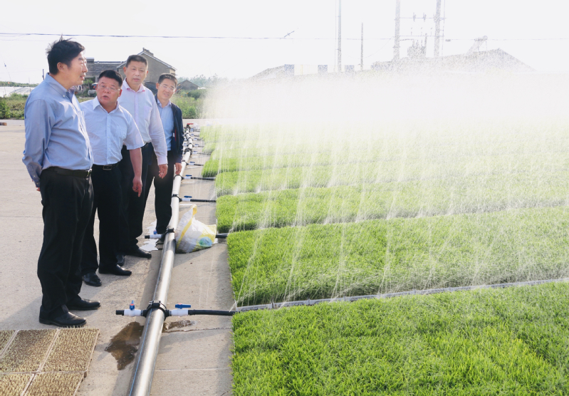 胡總對東壩頭上半年各方面的工作所取得的成績,給予充分肯定。他指出,東壩頭一是田間夏熟小麥長勢喜人,大面積平衡,從超高產的長勢水平看,豐收在望;二是發展種業意識強,圍繞發展大華自主優質品種(鎮麥-168),單項品種繁育面積占總面積1/3;三是高質量育秧水平高,落谷早、速度快、長勢平穩,成效顯著有氣勢;四是全農社會化托管服務起步晚、但步子穩,模式新、有發展的空間;五是農場雖小,存在發展難題,但當下所選擇的產業發展思路很有生命力,希望進一步向前推進;六是小城鎮再添新面貌,有動作、有亮點,要繼續關注民生改善事業。