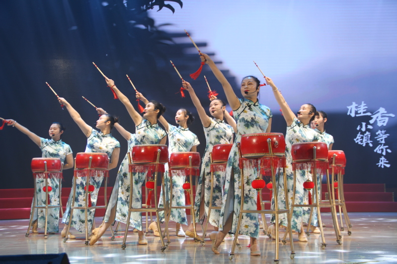 晚上7點,聯歡晚會在大型歌舞《慶豐收迎小康雙勝利——盛世歡歌》中拉開帷幕。整臺晚會主題突出,反映了農場現代農業建設成果和人文風貌。尤其是打鼓說唱《桂香小鎮等你來》,充分展示了濱淮農場濃厚的“桂香”文化。民樂合奏《桂鄉情韻》在觀眾意猶未盡中為晚會落下帷幕。