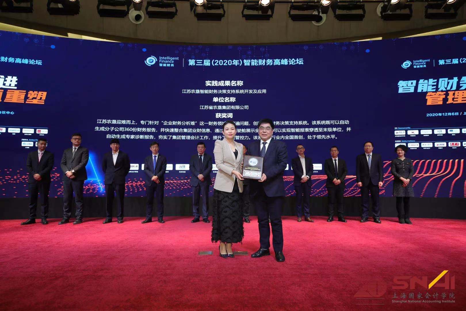 峰會(huì)期間頒發(fā)了首屆“中國(guó)智能財(cái)務(wù)最佳實(shí)踐”大獎(jiǎng),江蘇農(nóng)墾與中國(guó)石油、國(guó)網(wǎng)浙江電力、中國(guó)鐵搭、中科大一附院、雅居樂(lè)、云南煙草、南粵交通、蒙牛和中興新云等十家知名企業(yè)獲此獎(jiǎng)項(xiàng)。集團(tuán)公司總經(jīng)濟(jì)師楊炳生應(yīng)邀參加峰會(huì)并領(lǐng)獎(jiǎng)。該獎(jiǎng)項(xiàng)由財(cái)政部直屬的上海國(guó)家會(huì)計(jì)學(xué)院牽頭,與英國(guó)特許會(huì)計(jì)師公會(huì)(ACCA)、美國(guó)管理會(huì)計(jì)師協(xié)會(huì)(IMA)和國(guó)內(nèi)外智能財(cái)務(wù)領(lǐng)域頂尖研發(fā)機(jī)構(gòu)共同主辦,中國(guó)會(huì)計(jì)視野,中國(guó)會(huì)計(jì)報(bào),財(cái)務(wù)與會(huì)計(jì),新理財(cái),新會(huì)計(jì),管理會(huì)計(jì)研究,財(cái)會(huì)通訊和會(huì)計(jì)之友等國(guó)內(nèi)權(quán)威學(xué)刊提供媒體支持,37家國(guó)內(nèi)知名企業(yè)智能財(cái)務(wù)應(yīng)用項(xiàng)目共同參與角逐,評(píng)選分為資格審核、線下初評(píng)、網(wǎng)絡(luò)投票和競(jìng)獎(jiǎng)答辯等四個(gè)環(huán)節(jié),代表中國(guó)智能財(cái)務(wù)領(lǐng)域最高水平。