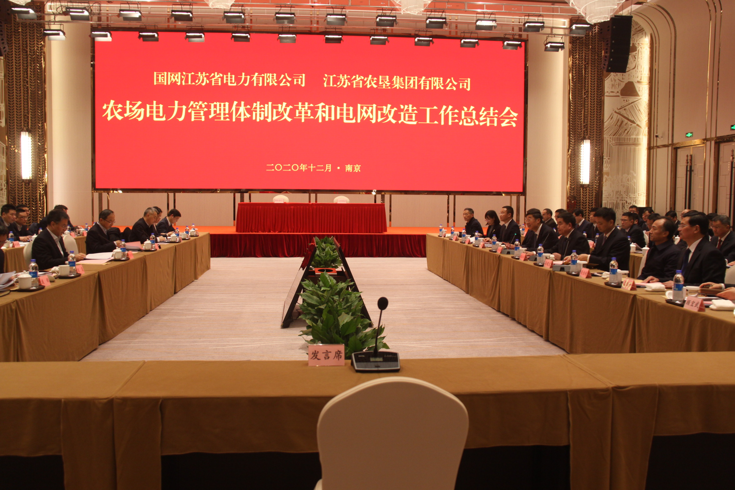 12月21日下午,江蘇農墾與國網江蘇電力農電“兩改”工作總結會暨戰略合作框架協議簽約大會在寧召開。集團公司黨委書記、董事長魏紅軍、國網江蘇電力總經理唐屹峰出席并講話,集團公司黨委副書記、總經理胡兆輝主持會議。