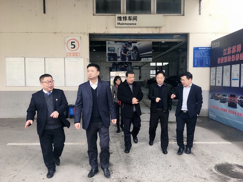 姜建友、劉耀武一行先后深入到蘇舜板橋4S店綜合體、安吉店、蘇汽店、錦尚店及省舊機動車交易市場等現場實地調研,詳細了解蘇舜經營狀況。在座談期間,聽取了蘇舜公司企業概況、“十三五”總體情況及“十四五”發展思路等匯報。