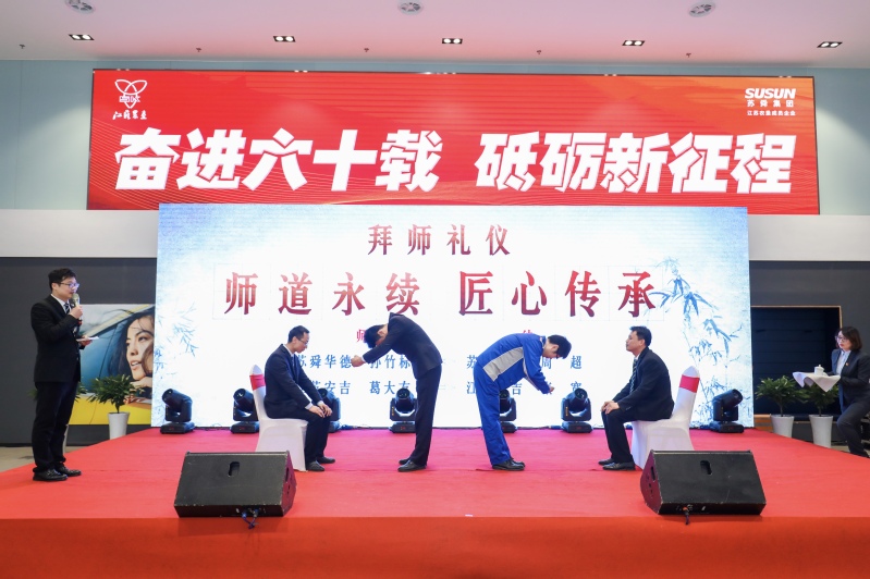 活動中,蘇舜公司黨委書記、董事長孫繼洲和總經(jīng)理曾慶業(yè)分別致辭,現(xiàn)場播放了蘇舜發(fā)展歷程VCR,老員工代表及師徒代表分享了情濃蘇舜故事,參加慶典活動的領(lǐng)導(dǎo)和員工觀看了節(jié)目表演。