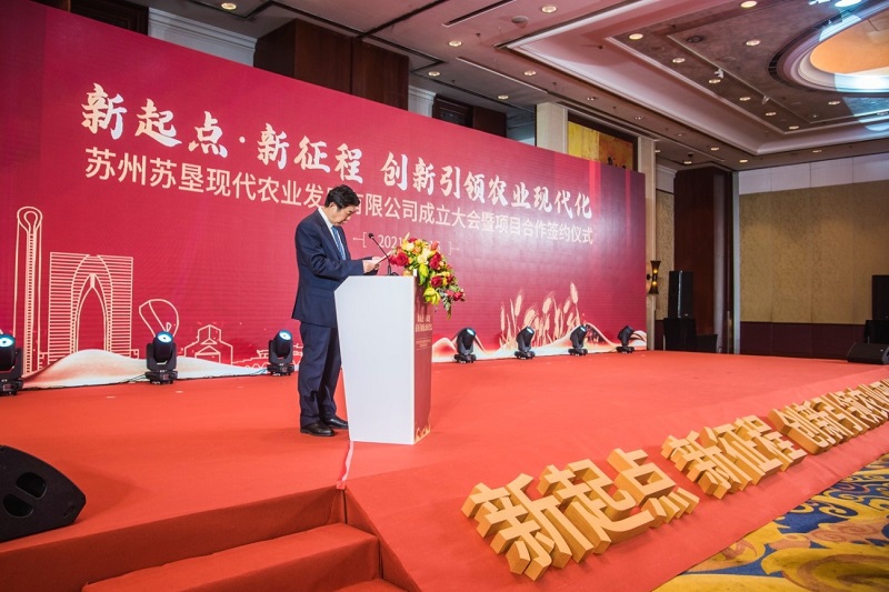 4月16日,蘇州蘇墾現(xiàn)代農(nóng)業(yè)發(fā)展有限公司成立大會暨項目合作簽約儀式在蘇州舉行。蘇州市委副書記朱民,江蘇省農(nóng)墾集團黨委書記、董事長魏紅軍出席并致辭,江蘇省農(nóng)墾集團總經(jīng)理、蘇墾農(nóng)發(fā)董事長胡兆輝主持會議和簽約儀式,蘇州市副市長蔣來清等出席活動。