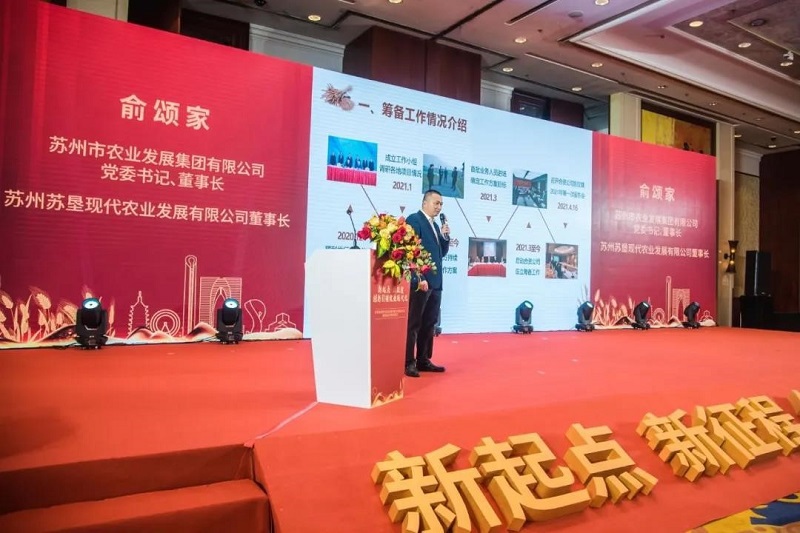 蘇州農(nóng)發(fā)集團董事長、蘇州蘇墾董事長俞頌家作新公司籌建情況的匯報,從公司籌備工作情況、公司概況和服務(wù)內(nèi)容、發(fā)展目標和未來展望等方面詳細介紹了新公司的情況。