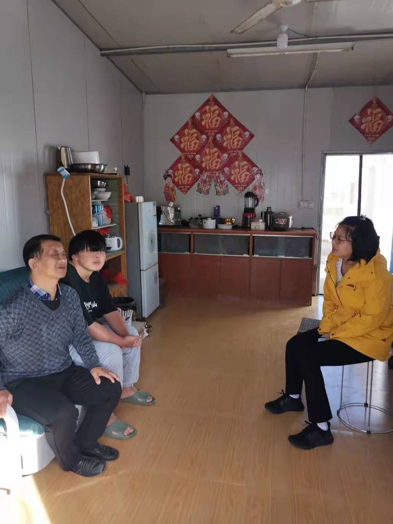 她出月子后,于1017帶著慰問金、大米、食用油等和李書記一起來到虞道虎家探望。通過深入交流了解到,他媽媽是外地人,在他4歲的時候拋下他就再也沒有回來,他爸爸身體殘疾又患有糖尿病伴隨著并發癥,致使視力嚴重下降模糊看不清,原先還能靠開三輪車帶乘客掙點微薄的生活費,現如今也只能作罷,面對如此不堪重負的家庭生活和上學的雙重壓力,家庭收入幾乎為零,經過村、鎮的申請,縣政府相關部門的審批,最終他爸爸獲得了殘疾補貼和民政低保收入,家庭全部收入也僅限于此。“黨員媽媽”王靖與虞道虎的交談中,得知他本人對未來很有想法,目前就讀于揚州技師學院,五年制大專,數控專業,他計劃好好學習順利畢業后將專轉本,繼續學歷深造以便日后好去蘇南就業,考慮蘇南相對高工資可以為窮困的家庭和年邁的父親減輕壓力。聽此,王靖很欣慰,勸導父親和虞道虎,困難是有,但是暫時的,只要虞道虎肯努力學習,保持積極樂觀的心態,未來一定可期。
