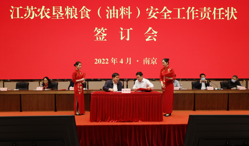 會上,魏紅軍代表集團公司黨委,與集團公司農業發展部、蘇墾農發股份公司及18家農場公司主要負責人簽訂了糧食(油料)安全責任狀。