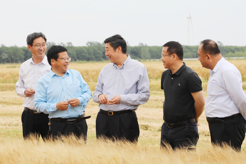 胡兆輝指出,三夏工作是墾區當前的重點工作,從臨海井然有序的三夏工作場面可以看出,臨海對三夏工作高度重視,干部職工戰三夏、促生產的干勁足、士氣高。當前,要利用晴好天氣全力做好保種保糧工作,協調好啤麥的收儲工作,要確保夏糧生產和保種工作全勝,更要抓好育秧、栽插管理,為秋糧豐收打好堅實基礎。胡兆輝強調,要協同各方面力量高效推進三夏生產,認真落實好各層各級安全責任,抓好安全生產。要加快推進江蘇農墾智慧農業科技園項目建設,讓園區盡快、盡早建成并投入使用,力爭把智慧農業科技園建成江蘇農墾研發高科技智慧農業的孵化器,成為江蘇農墾引領農業現代化發展的展示平臺。胡兆輝要求,臨海要加強與地方政府部門溝通聯系,加強與相關單位的交流合作,積極做好外拓基地的開發、建設和發展工作。要有效利用好外拓基地現有資源,通過輸入江蘇農墾先進的農業生產技術和管理模式,大力提高外拓基地農業生產水平,凸顯江蘇農墾農業生產的質量優勢、效益優勢、發展優勢,發揮好示范引領區域現代農業發展的生力軍作用。