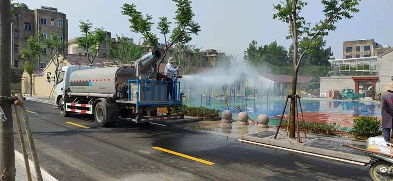 生活環境變得優美的同時也帶來了新的問題,柏油路的鋪設使得小區溫度驟升;新栽的行道樹并不能滿足遮陽的需求;寬闊的廣場猶如一臺電烤爐……為解決迫在眉睫的民生問題,社區環衛所組織安排人手,早晚兩次對柏油路面和居民廣場進行灑水降溫工作,使得炎炎夏日多了絲絲清涼,泛黃枯葉吐出了片片新綠,苦惱居民泛起了淡淡微笑……