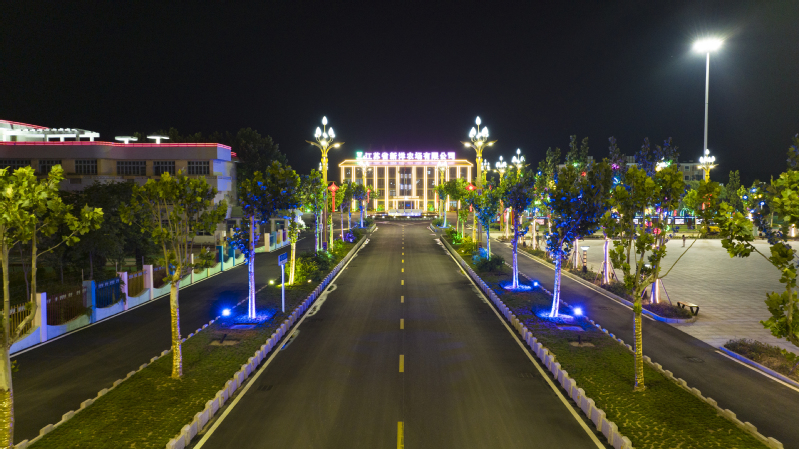 夜幕降臨,華燈初上,新洋農(nóng)場(chǎng)各處燈光陸續(xù)亮起,整個(gè)城鎮(zhèn)變成燈的海洋、光的世界,夜景如夢(mèng)如幻景美如畫。置身于黨建文化廣場(chǎng)上空鳥(niǎo)瞰這座城鎮(zhèn),燈火輝煌,溢彩流光。