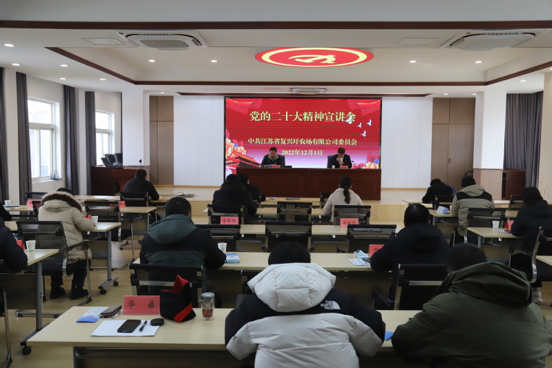 為深入學(xué)習(xí)宣傳貫徹黨的二十大精神,12月1日上午,復(fù)興圩農(nóng)場有限公司組織召開黨的二十大精神宣講會(huì),邀請了黨的二十大代表、淮安市盱眙縣桂五鎮(zhèn)養(yǎng)老黨支部書記、敬老院院長李銀江到場傳達(dá)宣講黨的二十大精神。農(nóng)場公司黨委領(lǐng)導(dǎo)班子成員、全體在職黨員、管理人員參加了宣講會(huì)。