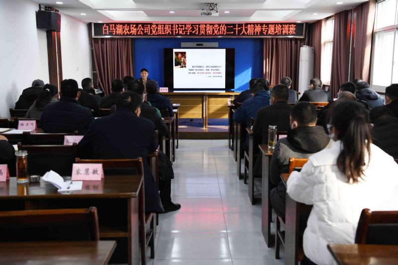 為深入學習貫徹黨的二十大精神,提升基層黨組織書記業務水平和工作能力,扎實推動學習貫徹黨的二十大精神走深走實,12月15日下午,白馬湖農場公司黨委舉辦黨組織書記學習貫徹黨的二十大精神專題培訓班。