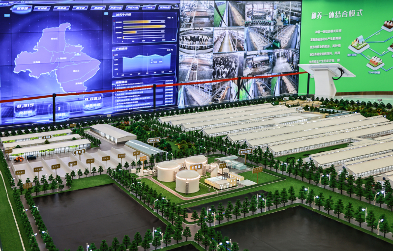 生態(tài)化發(fā)展加速轉(zhuǎn)型。牧場智慧生態(tài)系統(tǒng)中,污水循環(huán)管理設(shè)備包含牧場污水管路3D圖與污水監(jiān)測點(diǎn)位信息,做到實(shí)時監(jiān)測牧場污水指標(biāo),并將數(shù)據(jù)同步上傳至環(huán)保局,確保牧場水質(zhì)監(jiān)管到位。沼氣發(fā)電系統(tǒng)將標(biāo)準(zhǔn)化工藝處理糞污產(chǎn)生的沼氣,用于發(fā)電后接入國家電網(wǎng),沼液利用后的沼渣作為奶牛牛床墊料的生產(chǎn)原料,不僅成本低,更大大降低了養(yǎng)殖風(fēng)險。同時在場區(qū)配備廢氣檢測設(shè)備監(jiān)測養(yǎng)殖氣體環(huán)境,配備消防監(jiān)控設(shè)備監(jiān)測飼草區(qū)與沼氣發(fā)電區(qū)域煙火狀況。智能生態(tài)系統(tǒng)采取糞污固體發(fā)酵、沼氣烘干回床、沼液還田方式,實(shí)現(xiàn)“變廢為寶”。對牧場糞污發(fā)酵后的液位進(jìn)行采集,經(jīng)過無害化處理后的沼液通過預(yù)設(shè)專用管道,在卷盤式噴灌機(jī)的運(yùn)轉(zhuǎn)下自動噴灑在專屬消納用地的田間作物上,形成種養(yǎng)一體循環(huán),有效提高了糞污綜合利用水平。