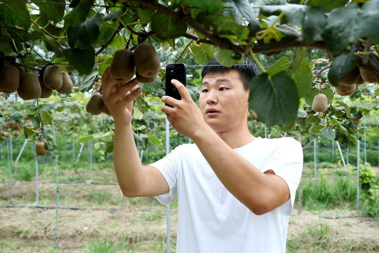 獼猴桃大豐收也給銷售帶來了考驗(yàn),與單純采用傳統(tǒng)的銷售模式相比,新曹農(nóng)場獼猴桃的銷售模式有了新變化。除傳統(tǒng)線下銷售以外,新曹農(nóng)場將直播間搬到獼猴桃園下,開啟線上直播銷售模式。通過“線上+線下”銷售農(nóng)產(chǎn)品的方式,推介新曹獼猴桃。