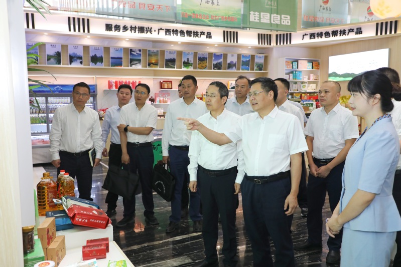 調研期間,吳本輝一行先后到廣西農墾旗下邕之泰公司、永新畜牧集團良圻獸醫技術中心、明陽農場公司現代農業基地、非糧生物質能技術全國重點實驗室、金光農場公司現代農業基地、桂墾良品展示展銷中心、廣西農墾展示館等地考察學習。在邕之泰公司,吳本輝對廣西農墾集團通過混改并購延伸生豬產業鏈,從無到有、從有到強的發展模式給予高度評價;在永新畜牧集團,雙方就生豬養殖模式、科技研發、成本壓降、環保治理等方面進行了深入交流;在廣西農墾明陽片區、金光片區現代農業基地,吳本輝一行考察調研了特色現代農業和設施農業發展情況,詳細聽取了廣西農墾特色農業發展、農產品和食品加工、市場營銷等方面的經驗做法;在非糧生物質能技術全國重點實驗室和廣西化工院,吳本輝對廣西農墾堅持科技創新賦能、深化科技人才隊伍建設、加速科技成果研發轉化等方面取得的成效給予了高度評價。