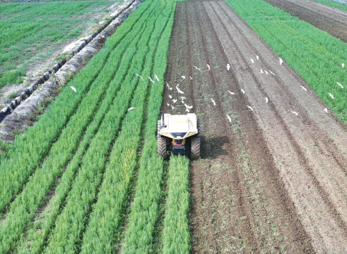 小滿時(shí)節(jié),位于江蘇省淮安市金湖縣的江蘇農(nóng)墾寶應(yīng)湖農(nóng)場(chǎng)歐盟國(guó)標(biāo)雙認(rèn)證的有機(jī)稻種植基地,一臺(tái)無人智能拖拉機(jī)正在進(jìn)行旋耕作業(yè)。這臺(tái)無人智能拖拉機(jī)由丘沃智能科技自主研發(fā),實(shí)現(xiàn)效率與油耗的聯(lián)合優(yōu)化控制。通過AI作業(yè)規(guī)劃算法,農(nóng)機(jī)和農(nóng)具可自主協(xié)同形成覆蓋作業(yè)方案,實(shí)現(xiàn)24小時(shí)無人化精準(zhǔn)作業(yè),單日耕作面積達(dá)700畝,較傳統(tǒng)模式效率提升3倍。 梁德兵 攝(來源:大國(guó)三農(nóng))