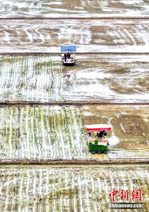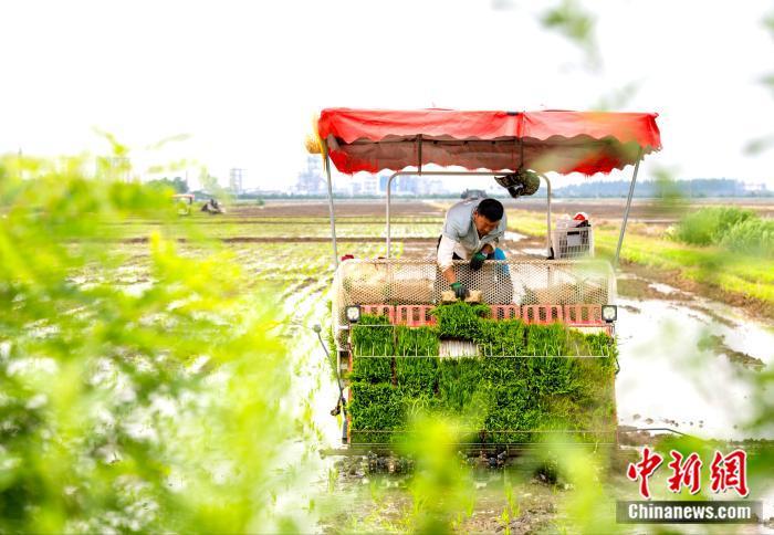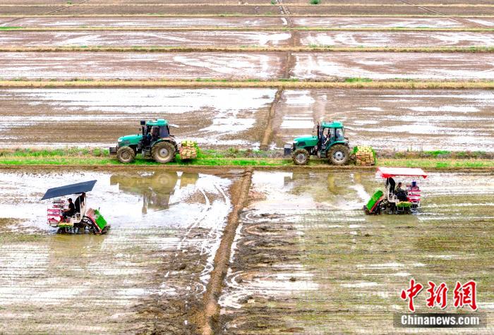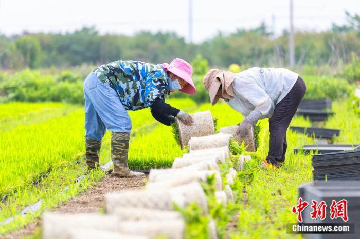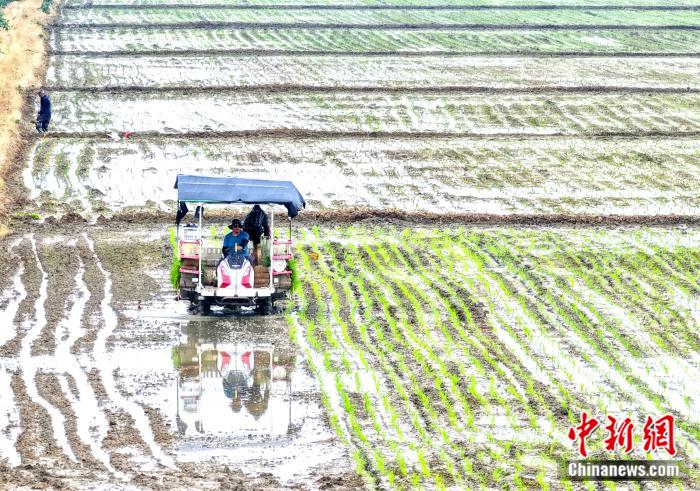 6月11日,江蘇省盱眙縣三河農(nóng)場,農(nóng)民正在進(jìn)行機(jī)插秧作業(yè)。據(jù)了解,三河農(nóng)場2025年水稻種植面積4.1萬畝,機(jī)插秧比例達(dá)到96-97%,機(jī)插秧不誤農(nóng)時(shí),比往年半人工插秧普遍縮短3~5天時(shí)間。圖/CNSphoto 許昌銀 攝