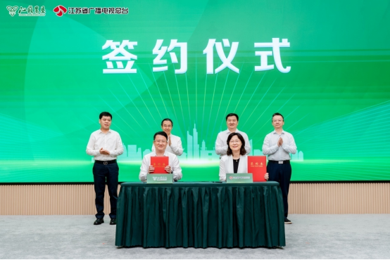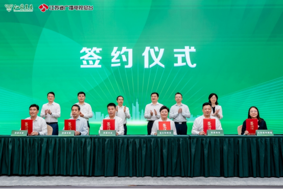 在簽約環(huán)節(jié),江蘇省農(nóng)墾集團(tuán)與江蘇廣電總臺(tái)簽署了戰(zhàn)略合作協(xié)議。