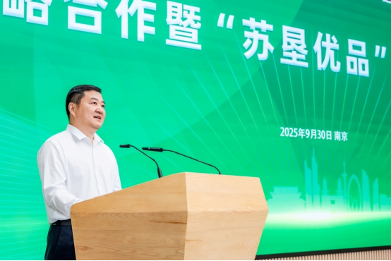 吳本輝在致辭中表示,江蘇農(nóng)墾歷經(jīng)73年發(fā)展,已成為以現(xiàn)代農(nóng)業(yè)為核心,一二三產(chǎn)業(yè)融合發(fā)展的省屬大型國有企業(yè)。“蘇墾優(yōu)品”作為今年集團(tuán)重點(diǎn)打造的平臺(tái)品牌,堅(jiān)持綠色、安全、高品質(zhì)的標(biāo)準(zhǔn),致力于滿足消費(fèi)者對(duì)健康餐桌和美好生活的需求。期待雙方緊密協(xié)同、資源互補(bǔ),共同打造全國領(lǐng)先的農(nóng)業(yè)品牌建設(shè)典范,助力江蘇品牌強(qiáng)省戰(zhàn)略實(shí)施,為推動(dòng)江蘇農(nóng)業(yè)現(xiàn)代化走在全國前列貢獻(xiàn)品牌力量。