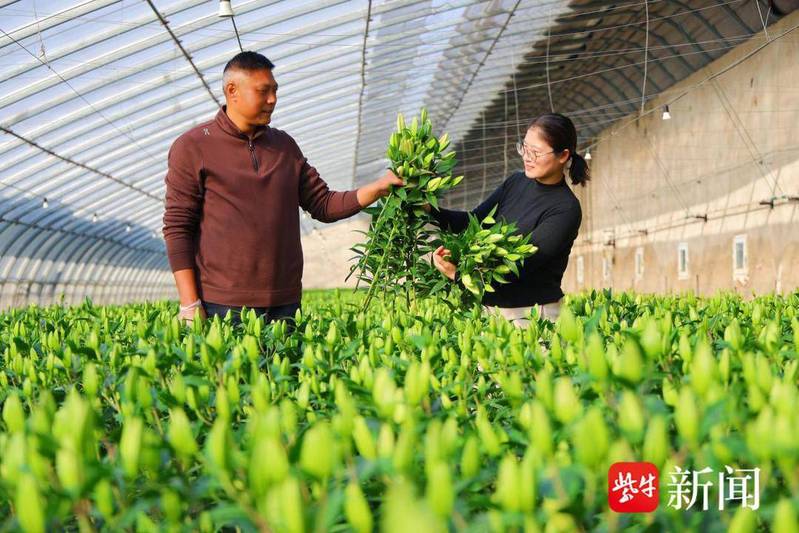 初冬時節(jié),走進連云港崗埠農(nóng)場高效農(nóng)業(yè)示范園26號大棚,一派繁忙而喜悅的景象映入記者眼簾,一株株百合花挺拔站立,不少已經(jīng)露出了粉色的花苞,顯得生機勃勃?!耙⒁鈪^(qū)分百合花苞數(shù)量,包裝時候要盡量保持花苞平齊?!?1月24日上午,園區(qū)副主任魏建東正帶領(lǐng)著工作人員,認(rèn)真地采收、分揀、包裝著首批成熟的百合花。