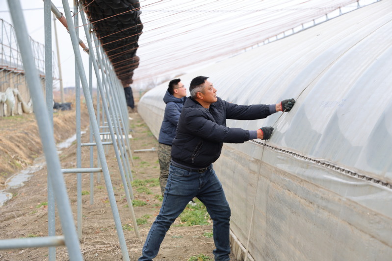 三河農場將防護重點聚焦草莓產業,以“早準備、嚴落實、保安全”為原則,組織工作人員放棄休息時間,于1月17日至18日全面開展草莓大棚防寒加固工作。工作人員對大棚鋼架連接點、棚膜松緊度進行拉網式排查,逐一擰緊松動卡扣,仔細檢查卷簾設備與照明設施,確保大棚能夠承受風雪壓力,全力守護草莓生產安全。