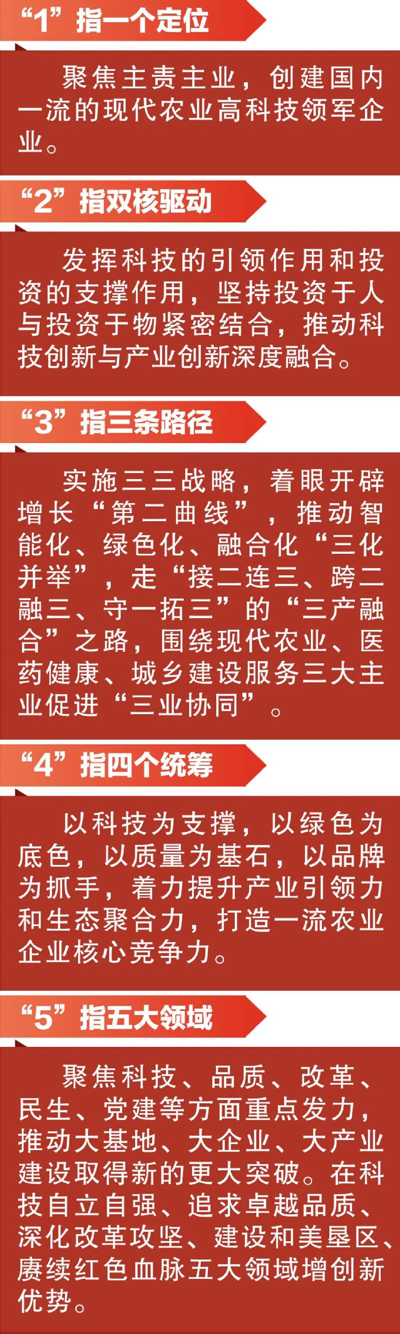 集團“十五五”發(fā)展總體要求是:堅持以習近平新時代中國特色社會主義思想為指導,深入學習貫徹習近平總書記系列重要講話重要指示,尤其是關(guān)于江蘇工作、“三農(nóng)”工作、國企工作的重要論述,認真落實省委省政府決策部署,扛牢“示范區(qū)、國家隊、排頭兵”的職責使命,緊扣“爭當表率、爭做示范、走在前列”的總體目標,聚焦現(xiàn)代農(nóng)業(yè)、醫(yī)藥健康、城鄉(xiāng)建設服務主業(yè),堅持“智能化、綠色化、融合化”發(fā)展方向,形成產(chǎn)業(yè)鏈縱向延伸、橫向拓展、產(chǎn)融結(jié)合、多元集成的發(fā)展格局,加快建設一流企業(yè),在“強富美高”新江蘇現(xiàn)代化建設中展現(xiàn)更大擔當。