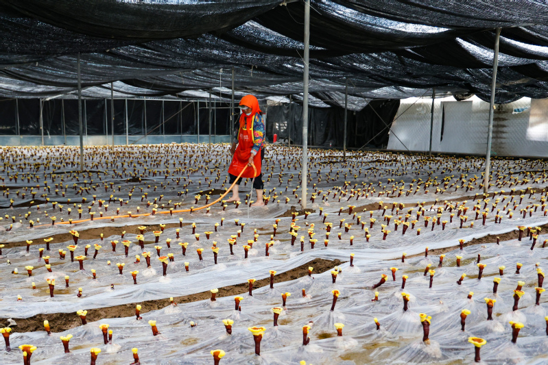 特色種植拓展農(nóng)業(yè)多元價值。食用菌種植基地內(nèi),一朵朵平菇破袋而出。通過標準化菌棒管理和環(huán)境控制技術,一個菌棒能連續(xù)收四到五茬,每茬產(chǎn)量約600斤,產(chǎn)品主要供應本地商超和社群團購渠道。靈芝種植基地則探索高附加值農(nóng)業(yè)發(fā)展路徑。采用仿野生栽培技術結合智能溫控系統(tǒng),產(chǎn)出的靈芝孢子粉破壁率達99.6%,有效成分含量遠超行業(yè)標準。云水灣景區(qū)創(chuàng)新引入的盆栽藍莓項目。600余盆盆栽藍莓錯落有致,大棚內(nèi)的水肥一體化設備通過滴箭將水溶肥精準輸送至每株根系,技術人員將基質(zhì)pH值穩(wěn)定在最適宜藍莓生長的4.5-5.5區(qū)間,游客既可到景區(qū)現(xiàn)摘現(xiàn)嘗,也能買回家放陽臺養(yǎng)護,讓“盆景”變“果盤”。