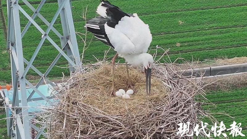 “發現鳥巢里已有兩枚蛋?!彼捂簩⑴臄z的視頻給專業人士辨認,確認這兩只大鳥是國家一級保護野生動物東方白鸛。過了幾天,宋婧再次過來拍攝時,發現鳥巢里出現了四枚鳥蛋。