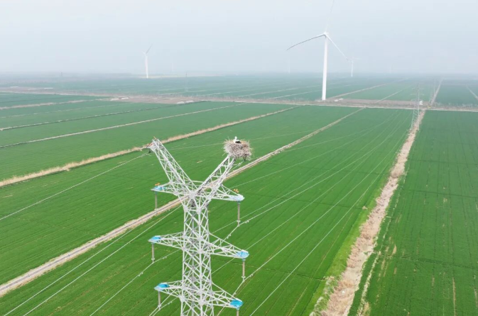 2月13日中午,農場工作人員在用無人機拍攝農場里小麥生長的狀況時,發現一座高壓鐵塔上有兩只大鳥正忙著整理鳥巢,在不驚擾到鳥兒的情況下進行觀察拍攝,發現鳥巢里有兩枚蛋。工作人員將視頻發給專業人士辨認,確認這兩只大鳥是國家一級保護野生動物東方白鸛。過了幾天,再次進行拍攝時,發現這對東方白鸛“夫妻”已經產下了四枚鳥蛋。