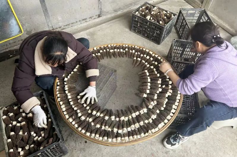 “今年羊肚菌品質格外好,菇型勻稱、肉質厚實,產量比去年漲了不少!”基地現場管理人員指著滿棚菌菇介紹。目前基地日采摘量已經從初期的100斤穩(wěn)步提升至400多斤,采收周期還能持續(xù)一個月左右,依托精細化管理,今年整體產量預計同比提升20%至40%。