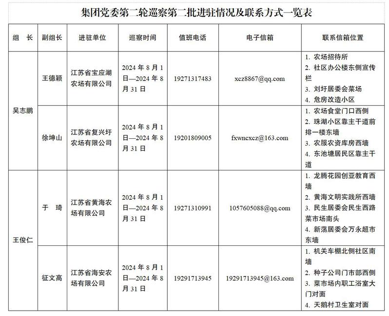 根據(jù)集團(tuán)黨委統(tǒng)一部署,8月1日,集團(tuán)黨委巡察組已完成第二輪第二批4家被巡察黨組織進(jìn)駐工作。各被巡察單位分別召開巡察進(jìn)駐動(dòng)員會(huì)。會(huì)上,集團(tuán)黨委巡察組組長作動(dòng)員講話,深入學(xué)習(xí)貫徹習(xí)近平總書記關(guān)于黨的自我革命的重要思想和關(guān)于巡視工作的重要論述,通報(bào)集團(tuán)黨委第二輪巡察工作重點(diǎn)和任務(wù)安排,對(duì)扎實(shí)開展巡察工作提出要求。本輪巡察,集團(tuán)黨委巡察組將聚焦“兩個(gè)維護(hù)”根本任務(wù)和推進(jìn)黨的自我革命“九個(gè)以”實(shí)踐要求,緊扣因地制宜發(fā)展新質(zhì)生產(chǎn)力、國企改革深化提升行動(dòng)和“建設(shè)現(xiàn)代農(nóng)業(yè)大基地、大企業(yè)、大產(chǎn)業(yè)”等重大任務(wù),全面貫徹黨的巡視工作方針,圍繞政治巡察“四個(gè)聚焦”監(jiān)督重點(diǎn),緊盯權(quán)力和責(zé)任,緊盯“一把手”和領(lǐng)導(dǎo)班子,緊盯群眾反映強(qiáng)烈的問題,開展政治監(jiān)督,查找政治偏差,推動(dòng)被巡察單位各項(xiàng)工作高質(zhì)量發(fā)展,為打造現(xiàn)代農(nóng)業(yè)航母、加快建設(shè)一流企業(yè)、構(gòu)建“清風(fēng)在田”廉潔生態(tài)體系提供堅(jiān)強(qiáng)保障。集團(tuán)黨委巡察組將在被巡察單位現(xiàn)場工作一個(gè)月。巡察期間,設(shè)專門值班電話、電子信箱、聯(lián)系信箱等,主要受理涉及被巡察單位領(lǐng)導(dǎo)班子及其成員、相關(guān)重點(diǎn)崗位干部(含已離退休、已調(diào)離)的問題反映。巡察組在第二批被巡察單位受理信訪時(shí)間截止到2024年8