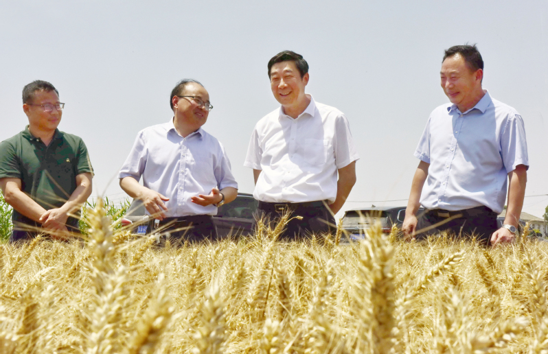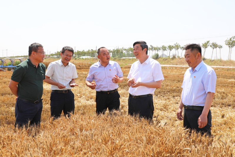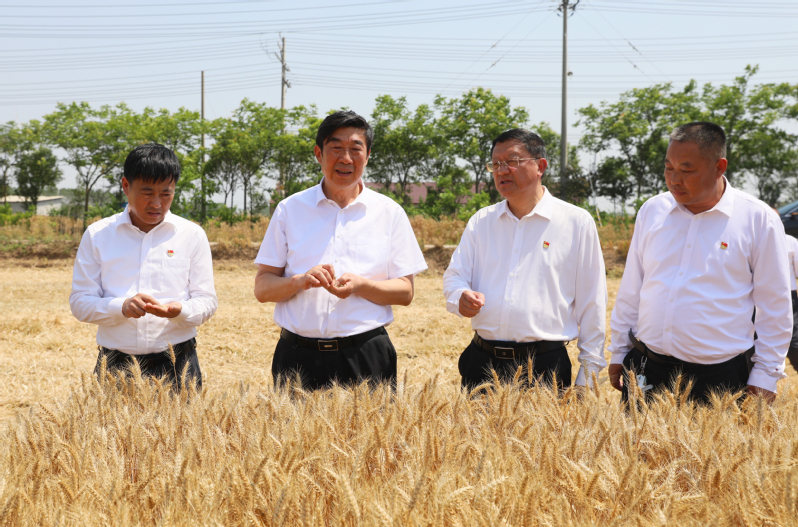 6月12日下午,集團公司黨委書記、董事長魏紅軍到東辛調研。他強調,要深入扎實開展學習貫徹習近平新時代中國特色社會主義思想主題教育,把“學思想、強黨性、重實踐、建新功”總要求貫穿始終,堅持問題導向,深化調查研究,持續提高發現問題、研究問題、解決問題的能力,以實實在在的工作業績檢驗主題教育成果。魏紅軍針對東辛漁光互補項目前期規劃中可能存在的問題,前往灌云洋橋漁光一體光伏發電項目現場考察,詳細了解相關經驗做法。隨后在東辛小麥制種大縣項目現場聽取“三夏”工作情況介紹,并對東辛“三夏”工作取得階段性勝利表示肯定。魏紅軍強調,要堅決抓好糧食安全這件頭等大事,決不能有任何松勁歇腳的思想,牢牢把握主動權,確保“三夏”取得全勝。要大力實施集團公司強核戰略和種業振興行動,將小麥制種大縣項目打造成東辛的一張名片。邁上新征程,東辛要聚焦影響高質量發展突出問題,進一步樹立“謀大事、干大事、成大事”的鮮明導向,抓好產業發展,強化內部管理,提升經營效益,不斷增強核心競爭力,在事關全局、事關發展、事關長遠的研究謀劃、難題破解上取得新進展新成效,奮力在墾區高質量發展和現代化建設中繼續當好排頭兵,為打造現代農業航母“江蘇