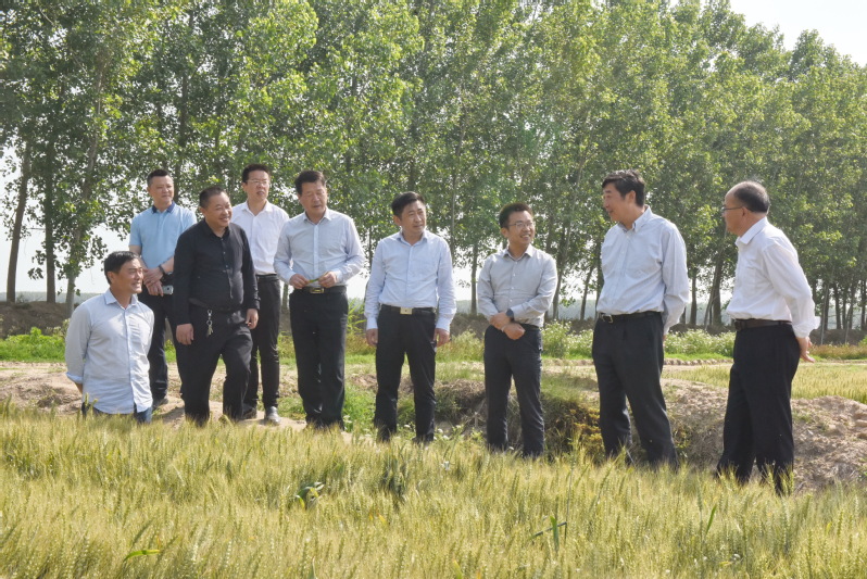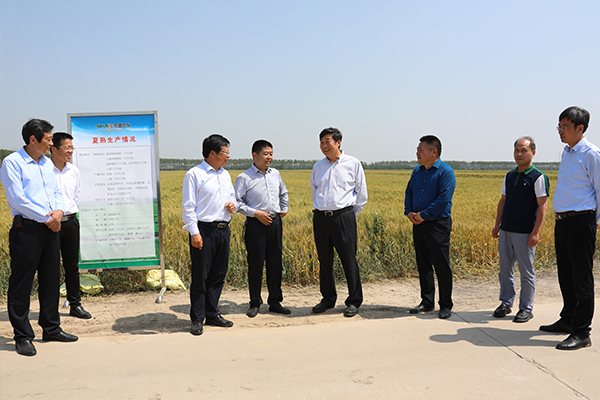 5月22日下午,天氣晴熱、陽光燦爛。集團公司總經理、蘇墾農發股份有限公司董事長胡兆輝一行到淮海檢查指導工作?;春nI導單祥忠王燦明等陪同并介紹情況。胡兆輝先后走進小麥、大麥等高產田間,大麥曬場現場和高效農業園區種植基地,每到一處親切慰問生產一線管理人員,仔細了解和聽取相關情況介紹,對淮海的各項工作表示充分肯定。下午3時許,田間麥浪滾滾,大型收割機已經在泛著金光的大麥田間收割,平齊的小麥田在藍天下加緊孕穗成熟,眼前所及之處,一派豐收景象。奔波在墾區各生產一線的胡兆輝不顧行程勞累,一到淮海就直奔39大隊小麥田和41大隊大麥田現場,實地查看并聽取了淮海小大麥生產的情況。當聽到淮海的三麥畝平成本截止當前比去年下降60元,并且實現小麥穗數、粒數雙增時,胡兆輝開心不已,多次用“兩個沒想到”加以夸贊。他說,今年三麥生產可謂多災多難,淮海在這么大的面積上實現了成本下降和小麥穗粒數雙增,有望在去年實現小麥單產超歷史后的再創新高,對淮海農業生產中所采取的一系列創新措施和取得的成績表示高度認可。驅車來到35大隊場頭,鋪滿曬場飽滿而又散發出清香的麥子十分誘人。胡兆輝從地上抄起一把剛收獲上來的大麥察看,并與基層單