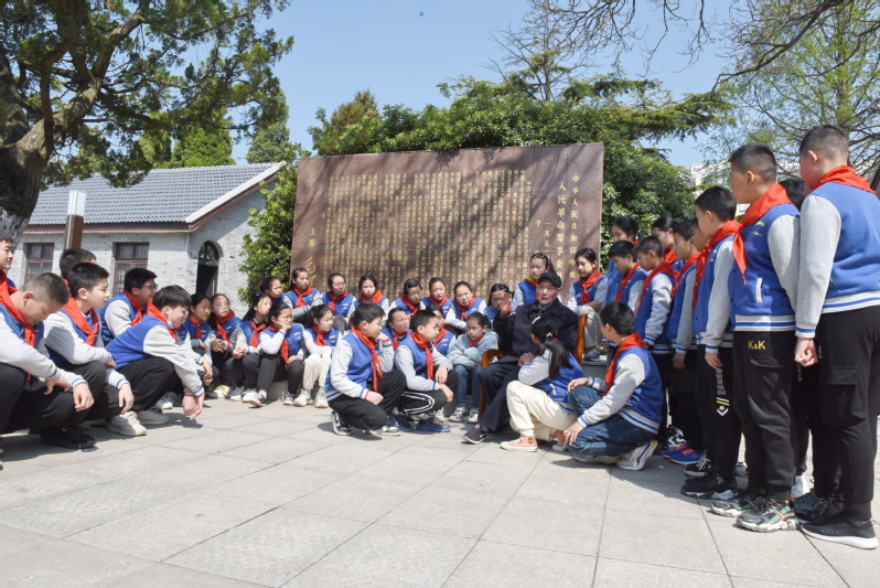 “1952年4月,我們農建四師的萬余官兵來淮海農場屯墾戍邊的路途中,即便是下雨天也從不擾民,夜晚老百姓的屋檐下、草堆旁官兵是席地而睡,讓老百姓深受感動。”4月14日上午,在農建四師大院內的毛澤東發布的“農業建設、生產待命”命令碑文前,89歲的原農建四師戰士胡福生正在給射陽縣淮海小學六年級的學生講黨史場史,“‘不與民爭地、不與民爭利’列入了農場的建場方針,我們共產黨人是千方百計地保護農民群眾的利益?!?/span>