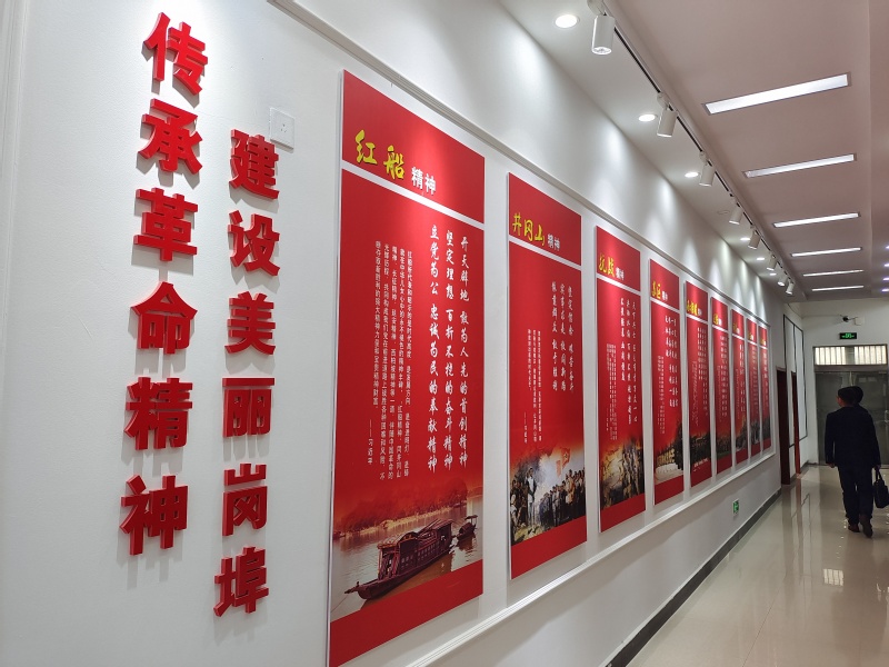 崗埠農場利用新時代文明實踐中心現有資源打造黨史學習教育陣地:一是統籌運用基層黨員活動室集中開展黨史學習教育;二是運用道德大講堂定期播放紅色電影;三是在職工書屋里設置黨史學習教育專柜;四是利用室外LED大屏播放黨史相關視頻;五是制作17面黨史學習教育專題宣傳畫,對實踐中心沿線燈箱進行集中更換;六是在中心走廊打造“傳承革命精神”專欄。