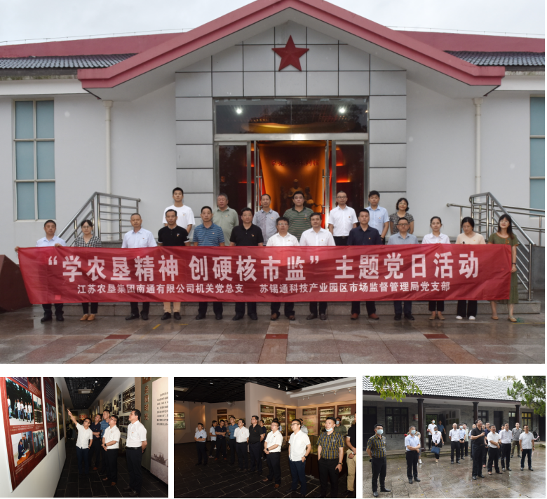 10月8日下午,南通公司機(jī)關(guān)黨總支與蘇錫通科技產(chǎn)業(yè)園區(qū)市場(chǎng)監(jiān)督管理局黨支部等一行近30人赴農(nóng)建四師暨淮海農(nóng)場(chǎng)歷史陳列館,開展“學(xué)農(nóng)墾精神 創(chuàng)硬核市監(jiān)”黨建共建實(shí)境教育活動(dòng),南通公司黨委書記、董事長(zhǎng)嚴(yán)忠和蘇錫通園區(qū)黨工委副書記、管委會(huì)副主任徐金龍分別帶隊(duì)參加了當(dāng)天的主題黨日活動(dòng)?;春^r(nóng)場(chǎng)公司黨委書記、董事長(zhǎng)、總經(jīng)理單祥忠及相關(guān)部門人員陪同。