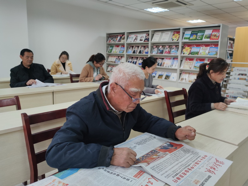 各基層黨支部即日起迅速以各種形式,掀起對(duì)六中全會(huì)精神進(jìn)行學(xué)習(xí)討論和深化吸收?;春^r(nóng)場(chǎng)社區(qū)充分發(fā)揮新時(shí)代文明實(shí)踐所的學(xué)習(xí)平臺(tái)地位,經(jīng)常更新并充實(shí)職工書(shū)屋的書(shū)報(bào)藏書(shū)量,引導(dǎo)職工居民緊跟時(shí)代脈搏充電學(xué)習(xí)。圖為11月12日下午,幾名職工居民第一時(shí)間在書(shū)屋內(nèi)認(rèn)真觀看刊有黨的十九屆六中全會(huì)精神的報(bào)紙。