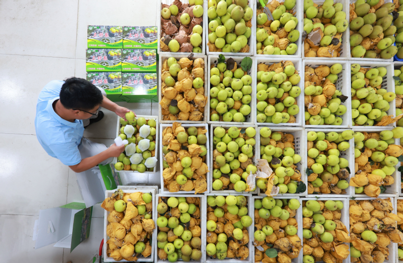 8月3日,在射陽(yáng)縣淮海農(nóng)場(chǎng)高效園區(qū)5畝連棟高架大棚葡萄園內(nèi),碩大成串的葡萄綴滿枝頭,就連空氣中也彌漫著沁人心脾、清新的水果味,經(jīng)過(guò)園區(qū)工人的精心培育,一串串綠色或黑色晶瑩的葡萄掛在藤架上,令人垂涎欲滴。入口品嘗,個(gè)個(gè)飽滿多汁,甜而不膩。慕名來(lái)采摘觀光的游客,在葡萄園內(nèi)一邊抬頭觀賞、一邊低頭采摘(如圖),幸福的滋味綻放在臉龐。在葡萄園里,剛剛用微信掃碼后的淮海居民吉長(zhǎng)明興奮地說(shuō):“我每年都要來(lái)到園區(qū)買幾箱葡萄,這里的葡萄不僅口感好,果也大,讓城里的人也來(lái)嘗嘗我們農(nóng)場(chǎng)獨(dú)特的‘土特產(chǎn)’。”據(jù)他講,每年城里的親朋好友每到這個(gè)季節(jié),就要托他買幾箱葡萄帶到城里去。據(jù)了解,園內(nèi)種植品種“夏黑”和“陽(yáng)光玫瑰”等葡萄品種,畝產(chǎn)量可達(dá)4000斤上下。特別是其統(tǒng)一施用農(nóng)家肥、無(wú)公害防蟲防病、反光膜覆蓋、科學(xué)滴灌、疏果等措施,輔助于智能化的通風(fēng)調(diào)溫、噴淋調(diào)水和調(diào)節(jié)光照設(shè)施的開展,合理調(diào)節(jié)土壤水分,降低田間溫、濕度,也減輕各類病蟲害的侵襲,讓葡萄按規(guī)定設(shè)計(jì)的要求進(jìn)行掛果,確保種出安全、優(yōu)質(zhì)的葡萄提供給消費(fèi)者。“我們的葡萄每斤售價(jià)在8元/斤,一畝地毛收入可達(dá)20000元。”園區(qū)負(fù)責(zé)人解進(jìn)空說(shuō),“是良好的品質(zhì)和采摘